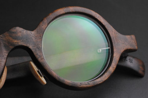 ○フロント部、テンプル部ともに銘木「 ウォールナット 」を使用し、鼻パットは眼鏡が汗でズレにくい竹製です。