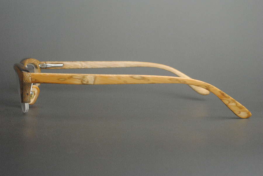 ○フロント部、テンプル部ともに晒竹を使用し、鼻パットも眼鏡が汗でズレにくい竹製です。